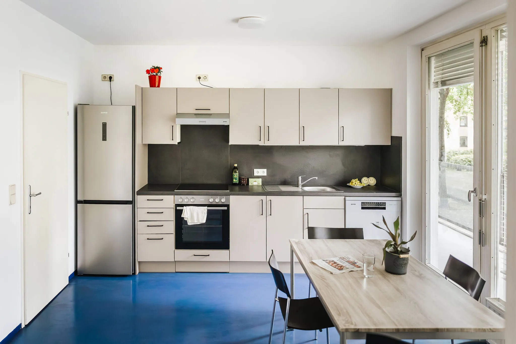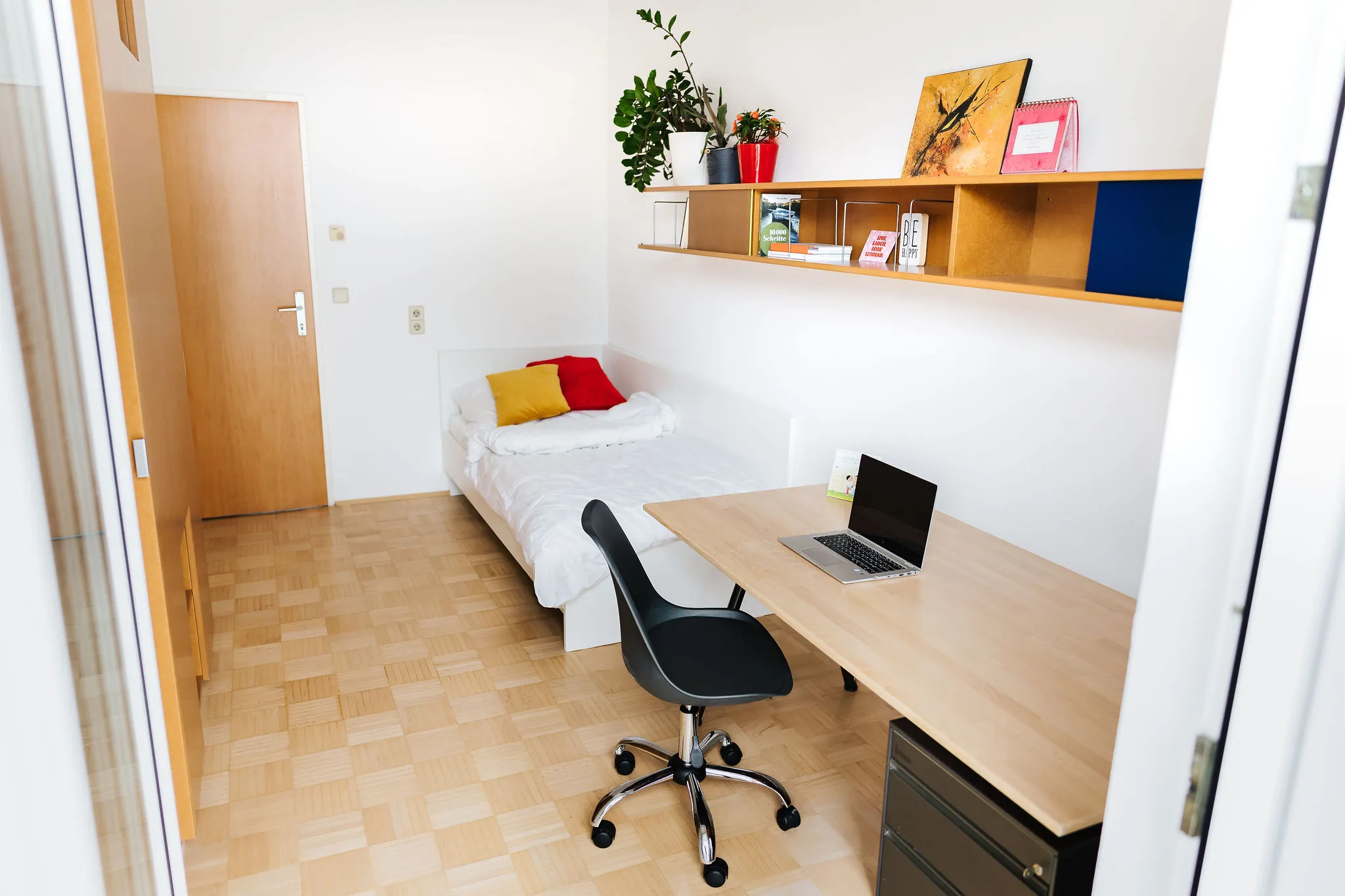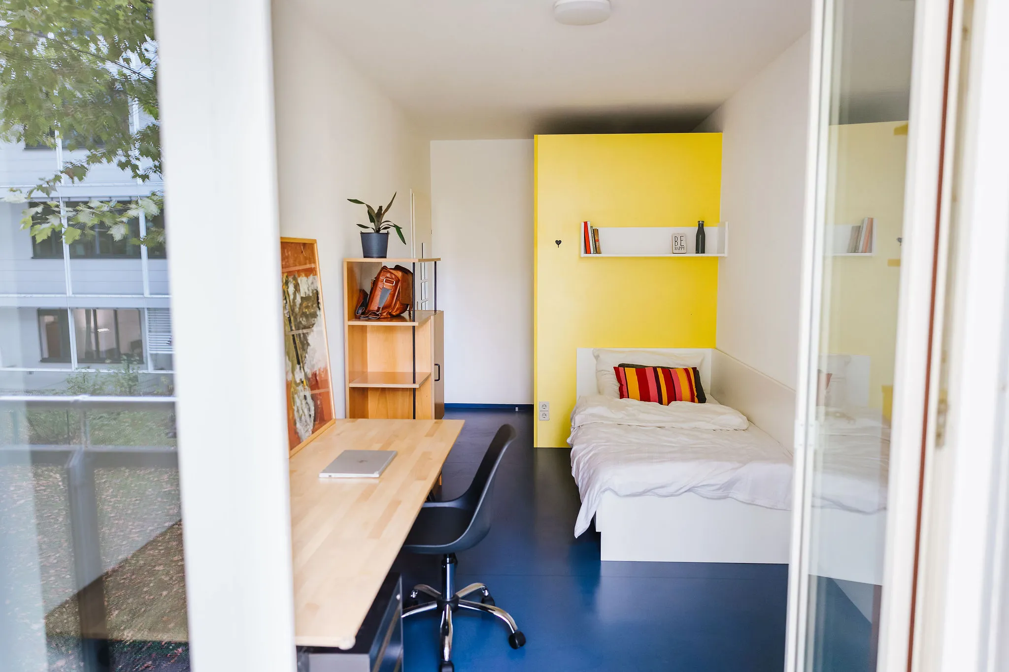 Neue Küchen, Elektrogeräte und Sanitärbereiche, neue bzw. erneuerte Böden, Schreibtische etc. bringen auch hier den Bewohner:innen einen höheren Wohnkomfort. Mit der umfassenden Sanierung der Dachterrasse entstand ein besonderer Ort der Begegnung für das Kennenlernen und den entspannten Austausch unter den Studierenden. Die Investitionssumme betrug 1,4 Mio. Euro. Wieder wurden die Möbel von Mitarbeiter:innen des BFI hergerichtet.